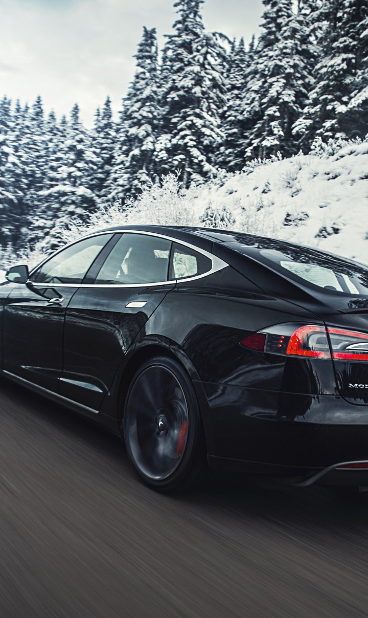 Back to Wallpaper snow, mountains, movement, track, electric car, Tesla Model S
